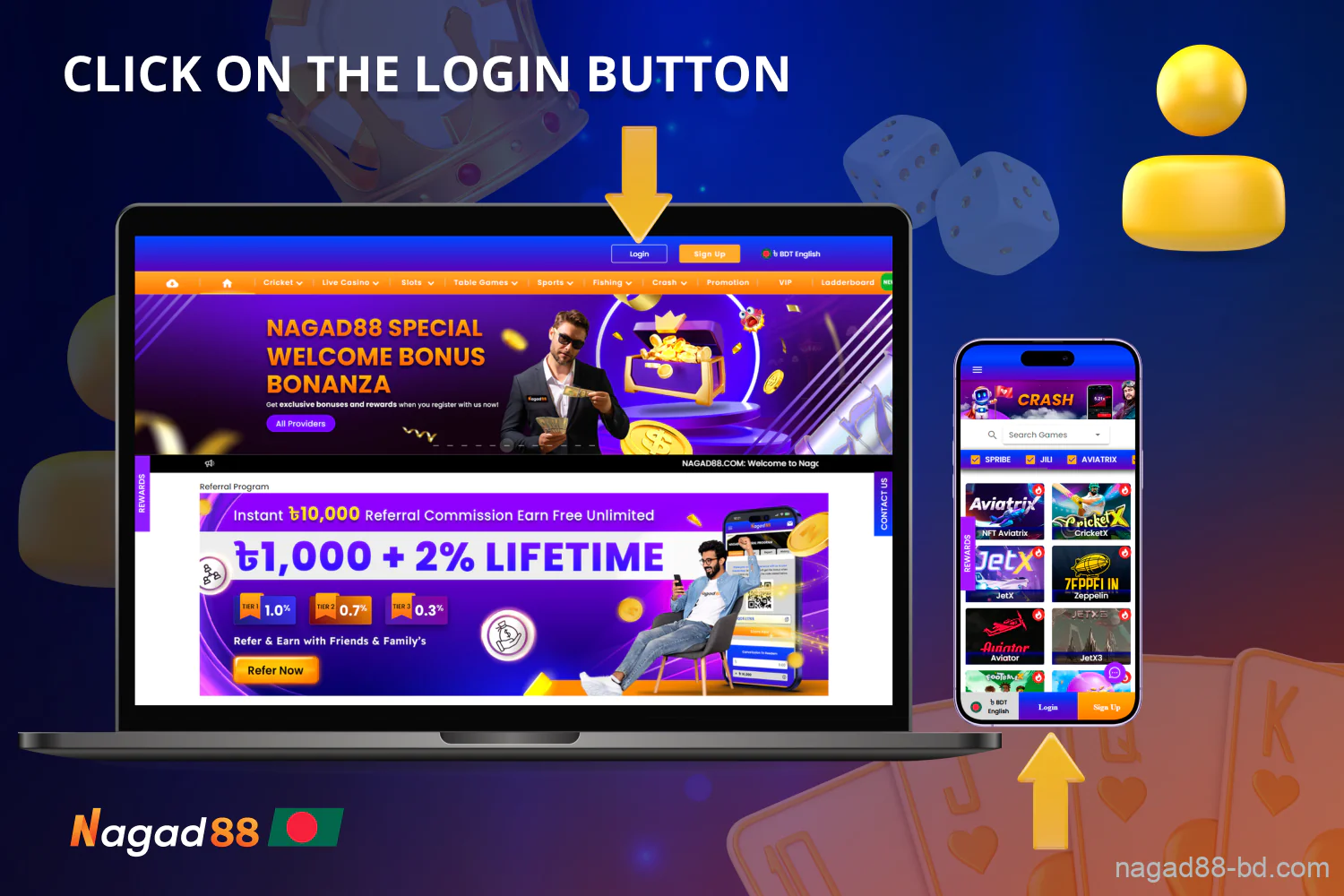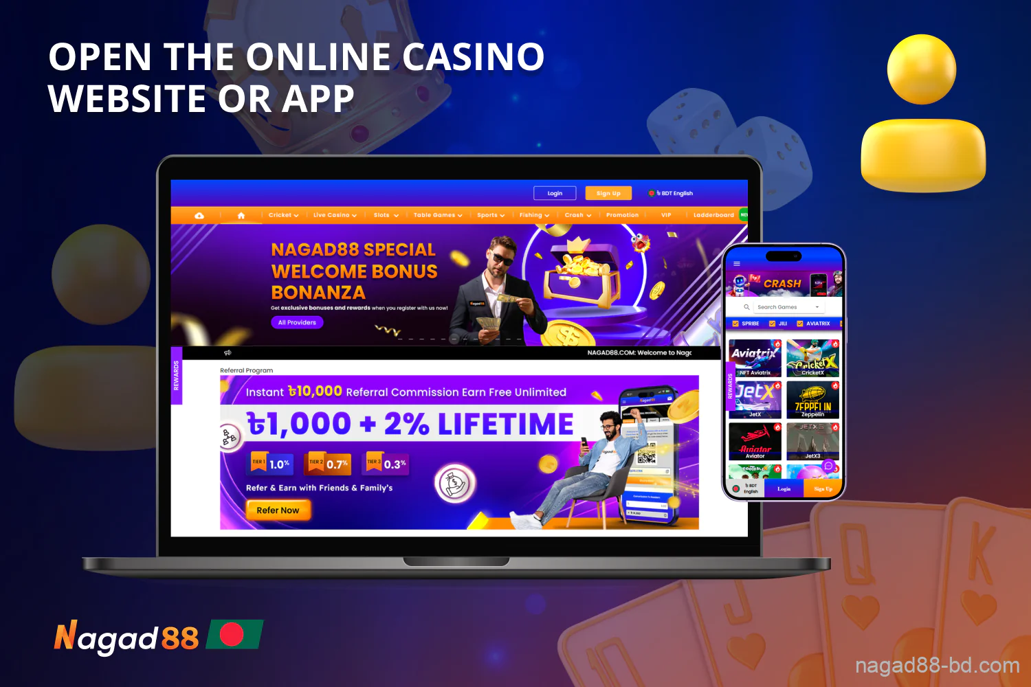 Join Nagad88 casino, create your personal casino account, and get a welcome bonus of up to BDT 20,000!
